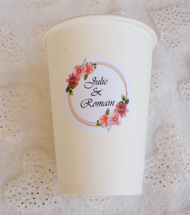 Les étiquettes font 4cm de haut (si besoin elles peuvent être plus grandes ou plus petites) et sont déjà apposées sur les gobelets. Vous n'avez rien à faire !