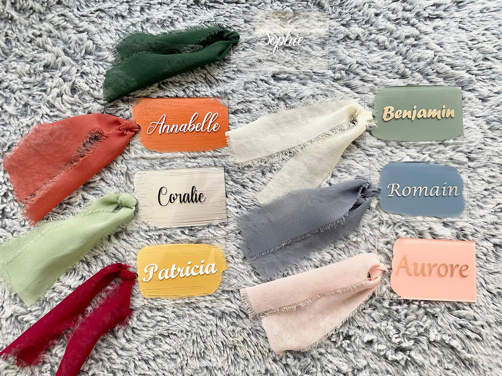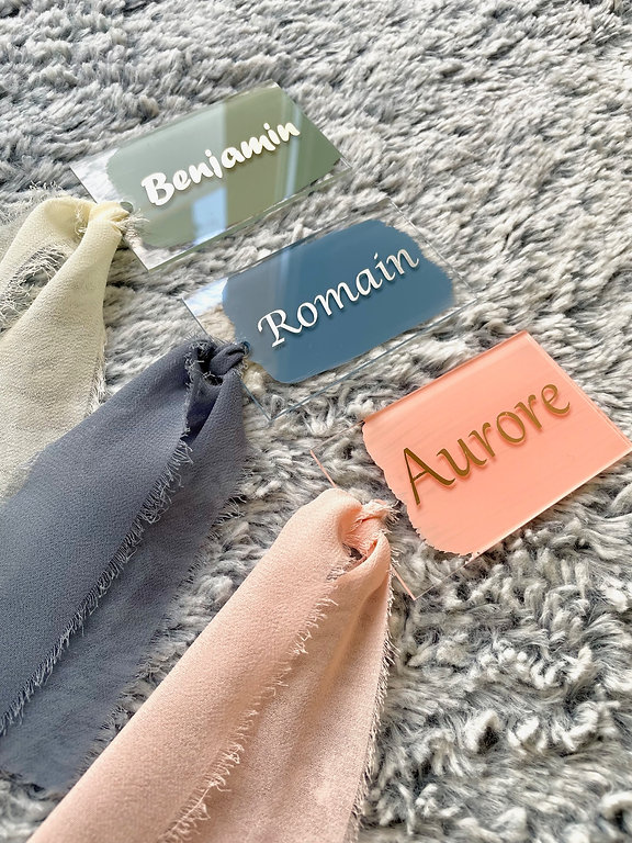 Texte au choix dans la limite de 1 prénom par porte nom sur une ligne.